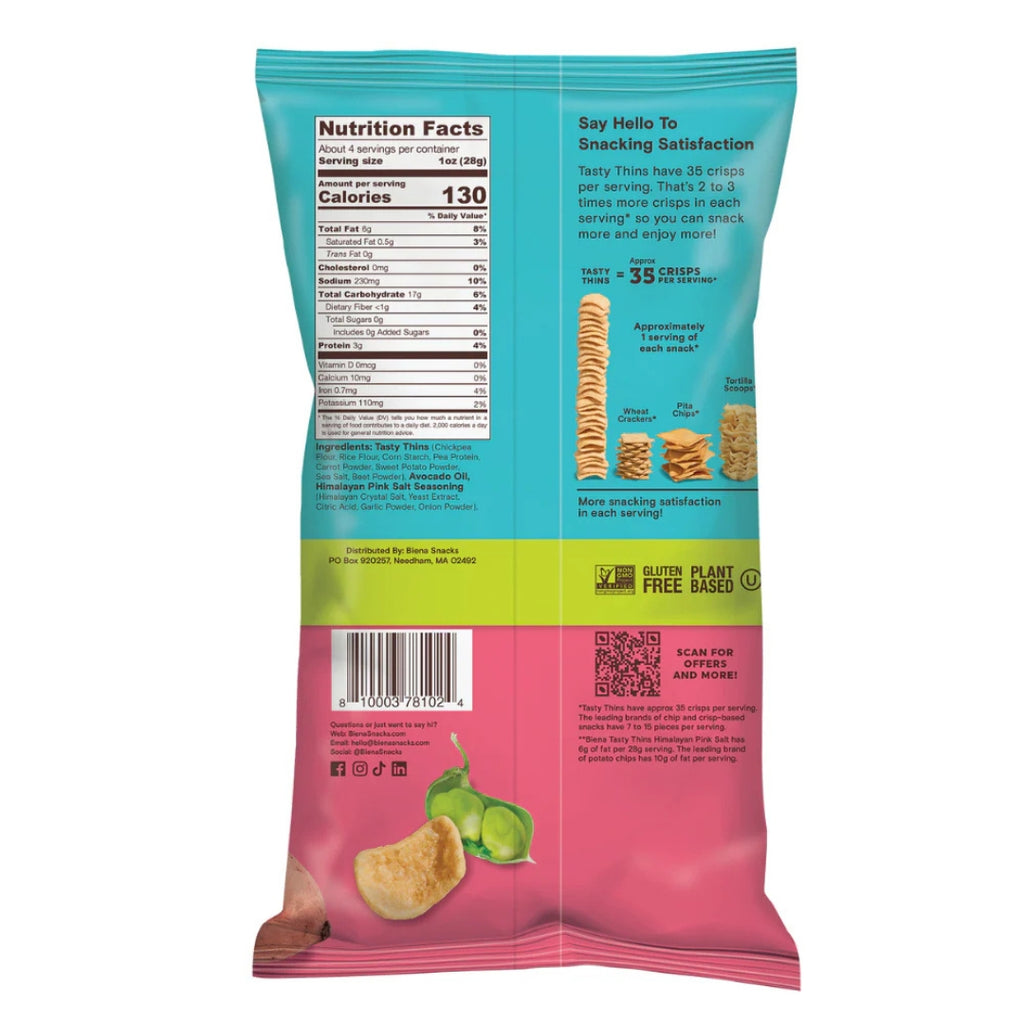 Biena Gluten-Free Tasty Thins Snack Crisps, Himalayan Pink Salt Flavor, 4oz
