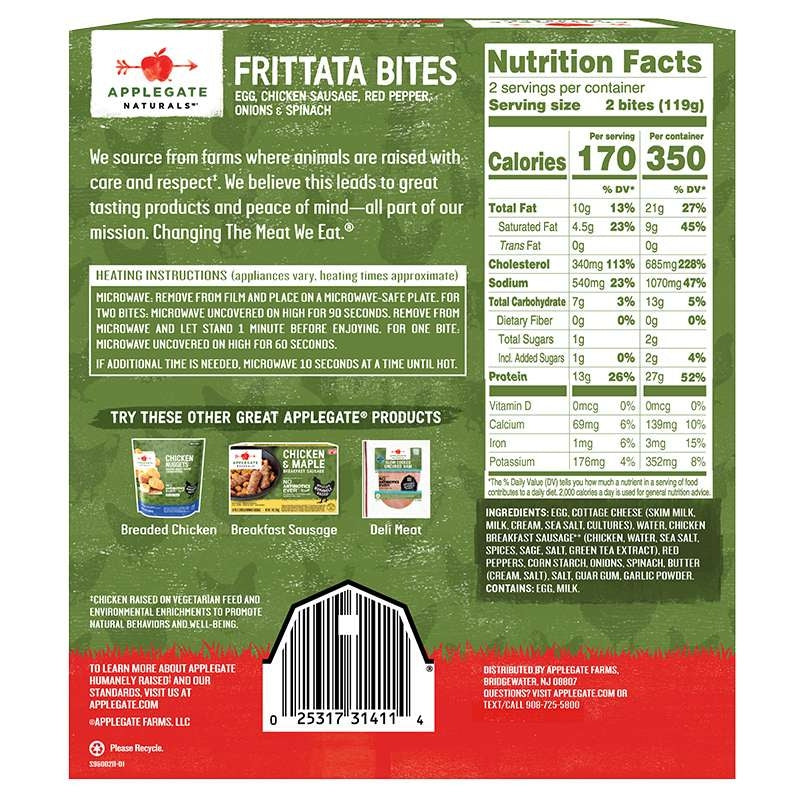 Applegate Egg, Chicken Sausage, Red Pepper, Onions and Spinach Frittata Bites 8.4 oz