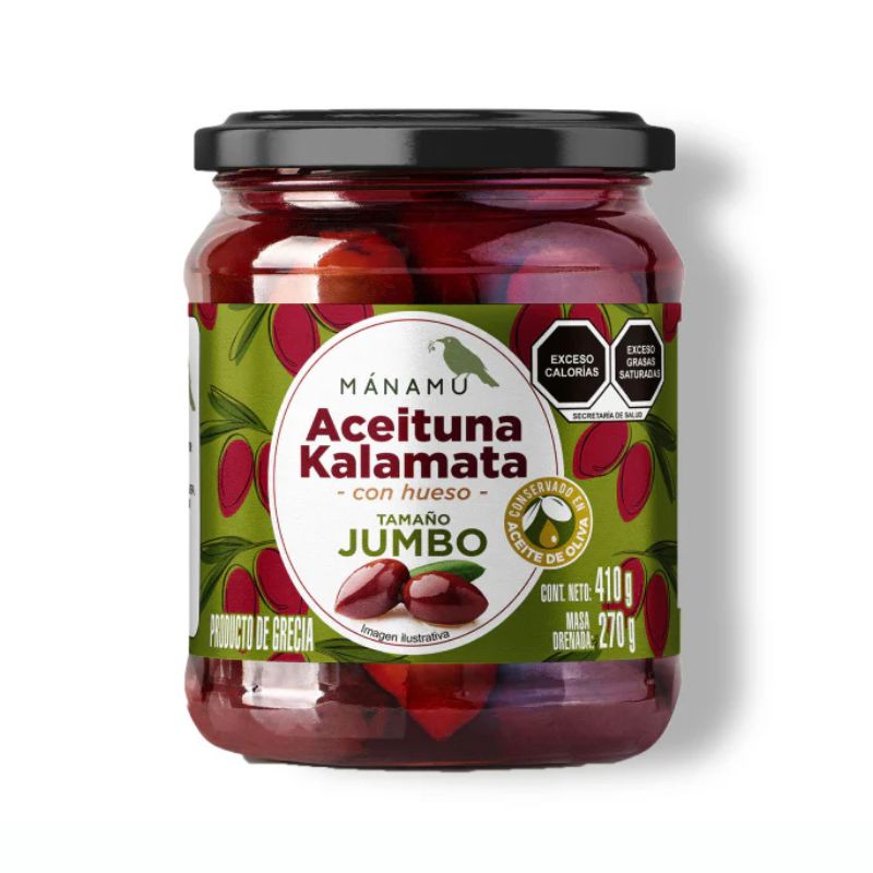 Mánamu Kalamata Olives Jumbo Size with Pit in Premium Olive Oil 410g
